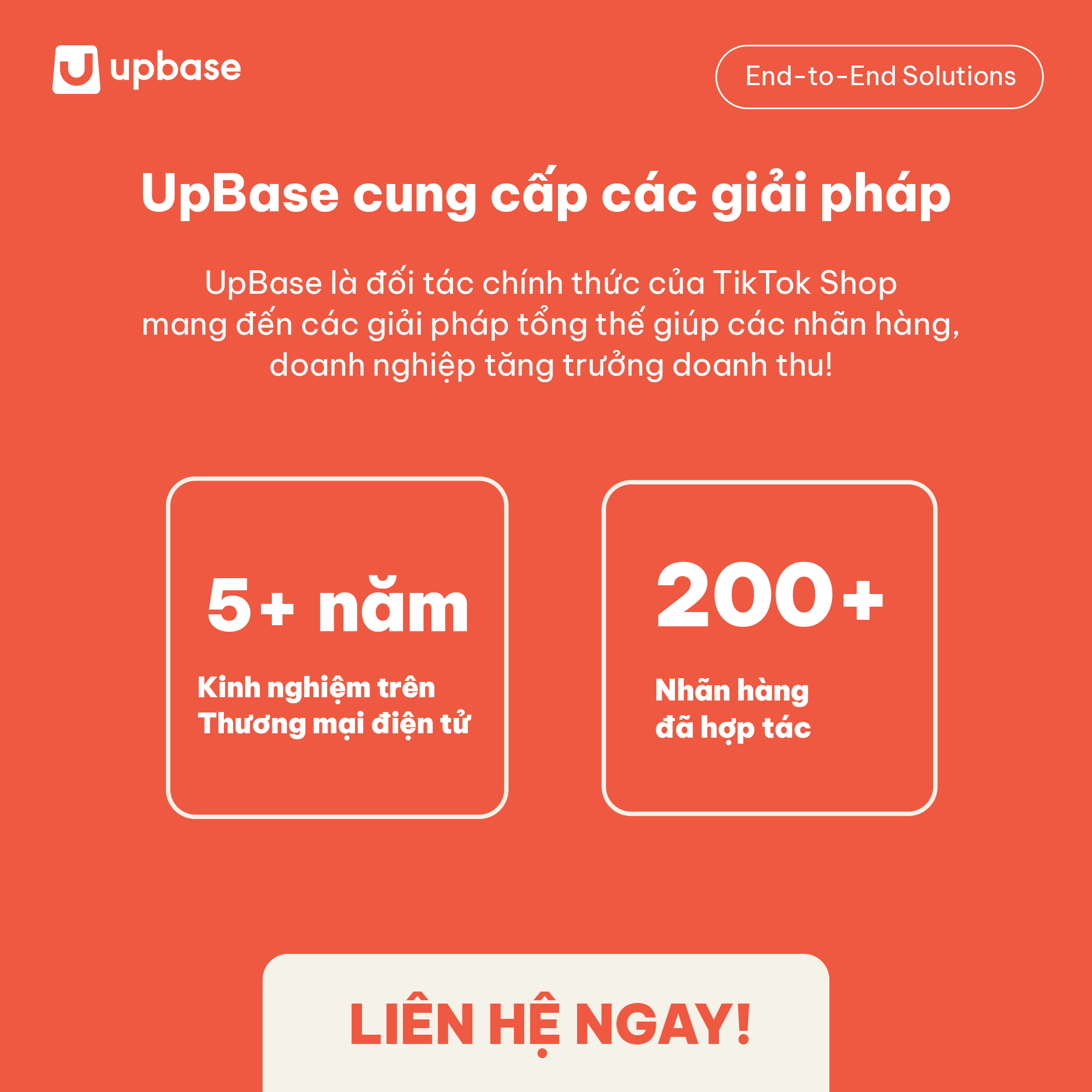 UpBase cung cấp giải pháp toàn diện, chuyên nghiệp và uy tín đồng hành cùng các Thương hiệu Việt phát triển trên Shopee, TikTok Shop, Amazon, bao gồm: Quản lý tài khoản Thương hiệu, Tư vấn chiến lược phát triển Thương hiệu và sản phẩm, Marketing, Logistic, Kho và Fulfillment.