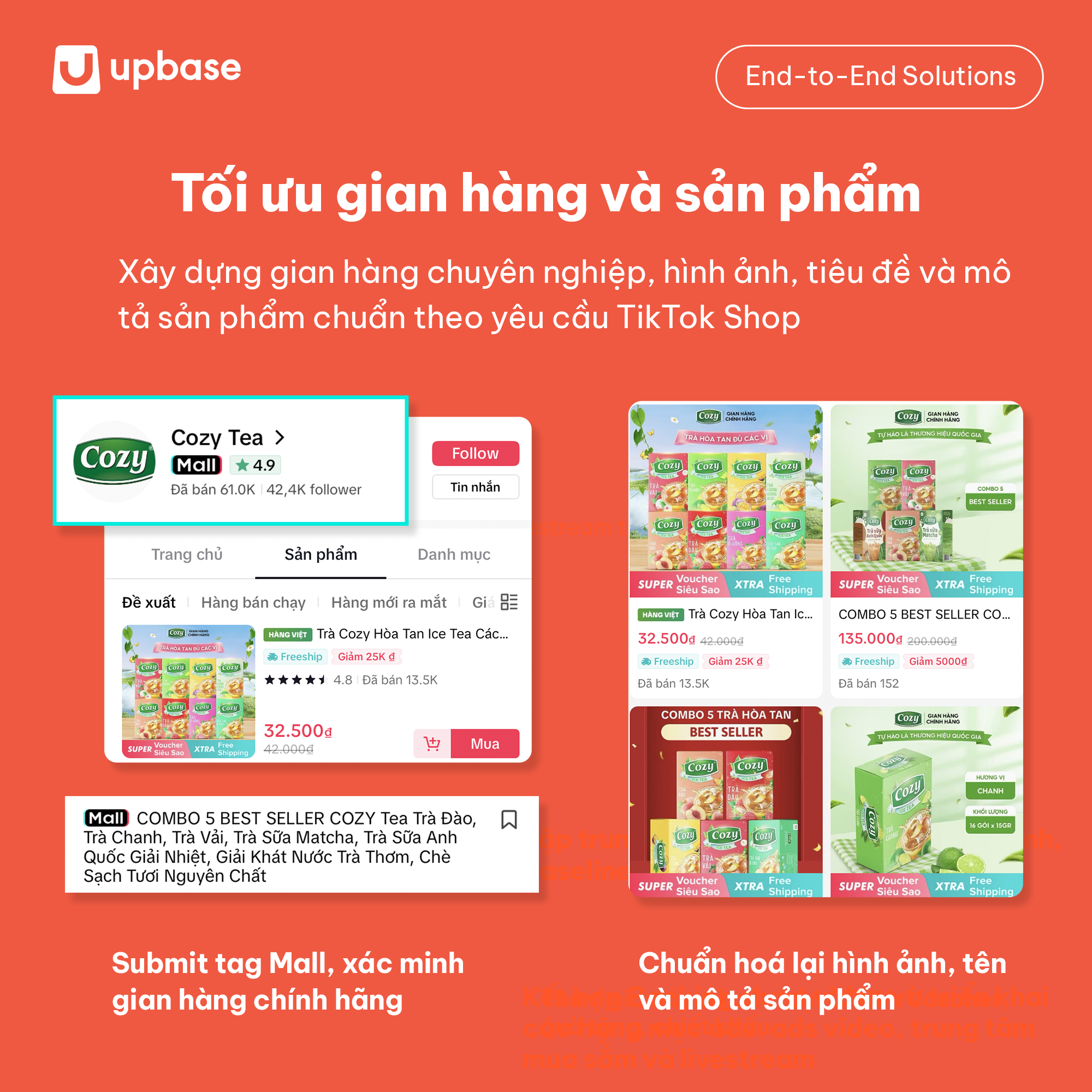 UpBase đã nghiên cứu dòng sản phẩm đang bán chạy trên các kênh offline và lựa chọn đó là sản phẩm key chủ đạo cho gian hàng để thúc đẩy trên TikTok Shop. Thúc đẩy các dòng sản phẩm khác nhau qua từng tháng để nắm bắt được nhu cầu trên sàn TMĐT của khách hàng đối với từng dòng sản phẩm như thế nào.