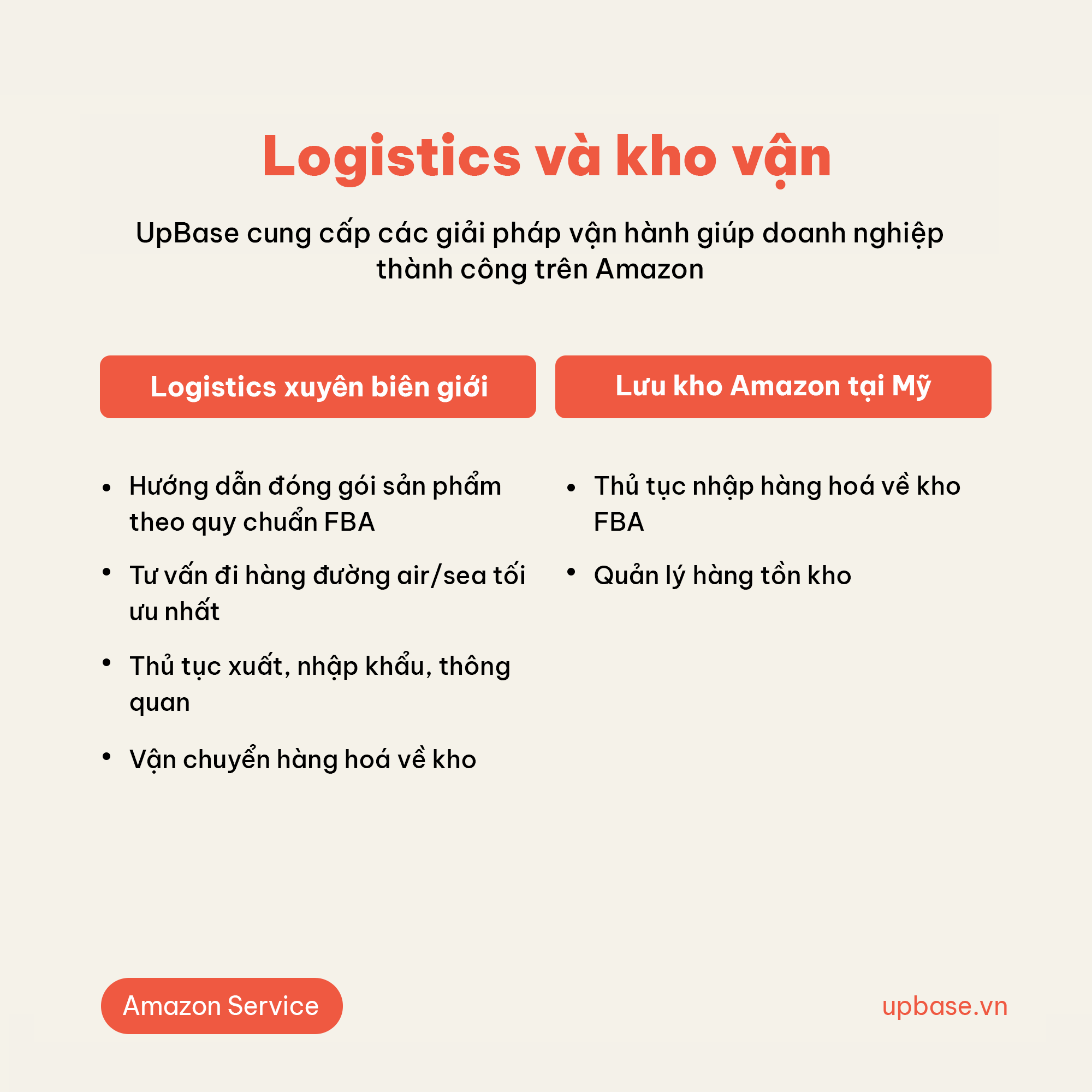 UpBase hỗ trợ doanh nghiệp giải quyết các vấn đề liên quan đến Logistics xuyên biên giới và Lưu kho Amazon tại Mỹ.