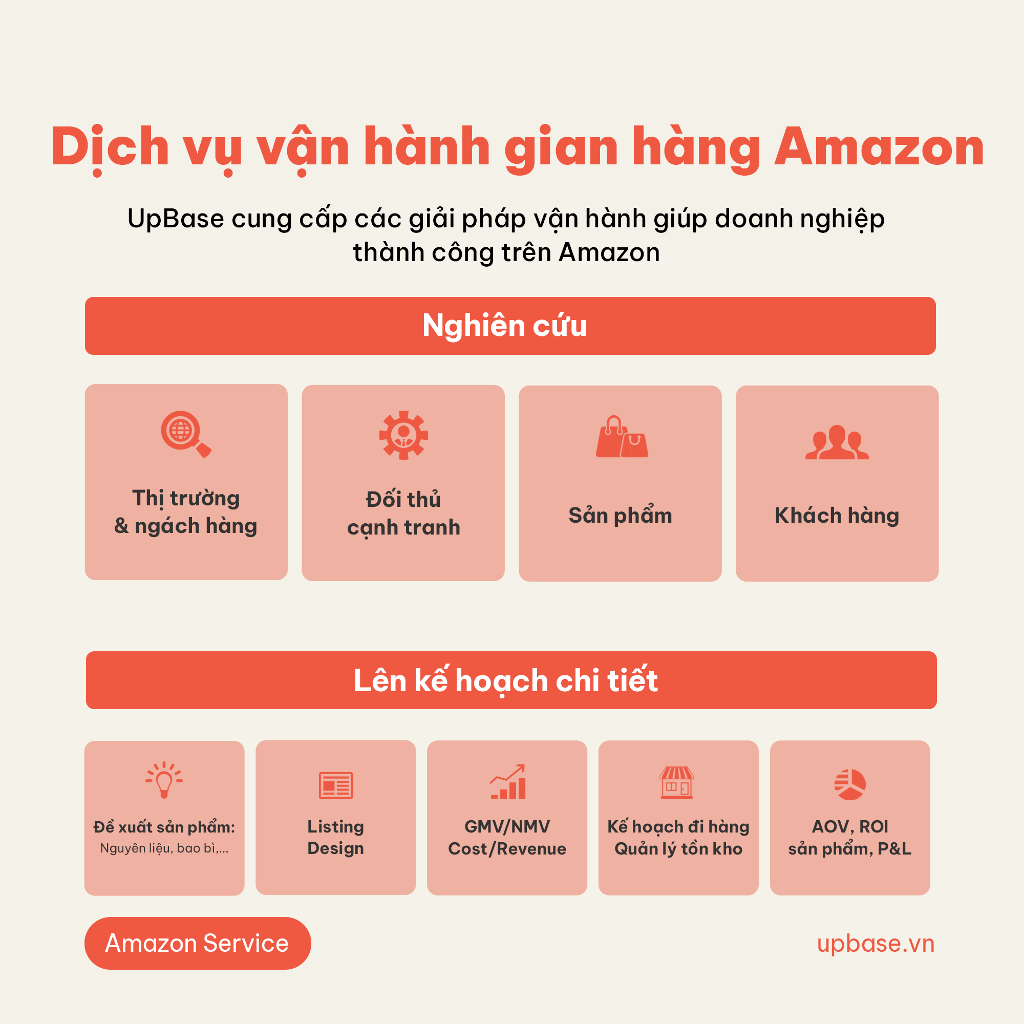 Upbase hân hạnh là đơn vị cung cấp các dịch vụ nghiên cứu thị trường, lập kế hoạch kinh doanh chi tiết và vận hành gian hàng trên Amazon, giúp các doanh nghiệp thành công trên nền tảng thương mại điện tử xuyên biên giới!