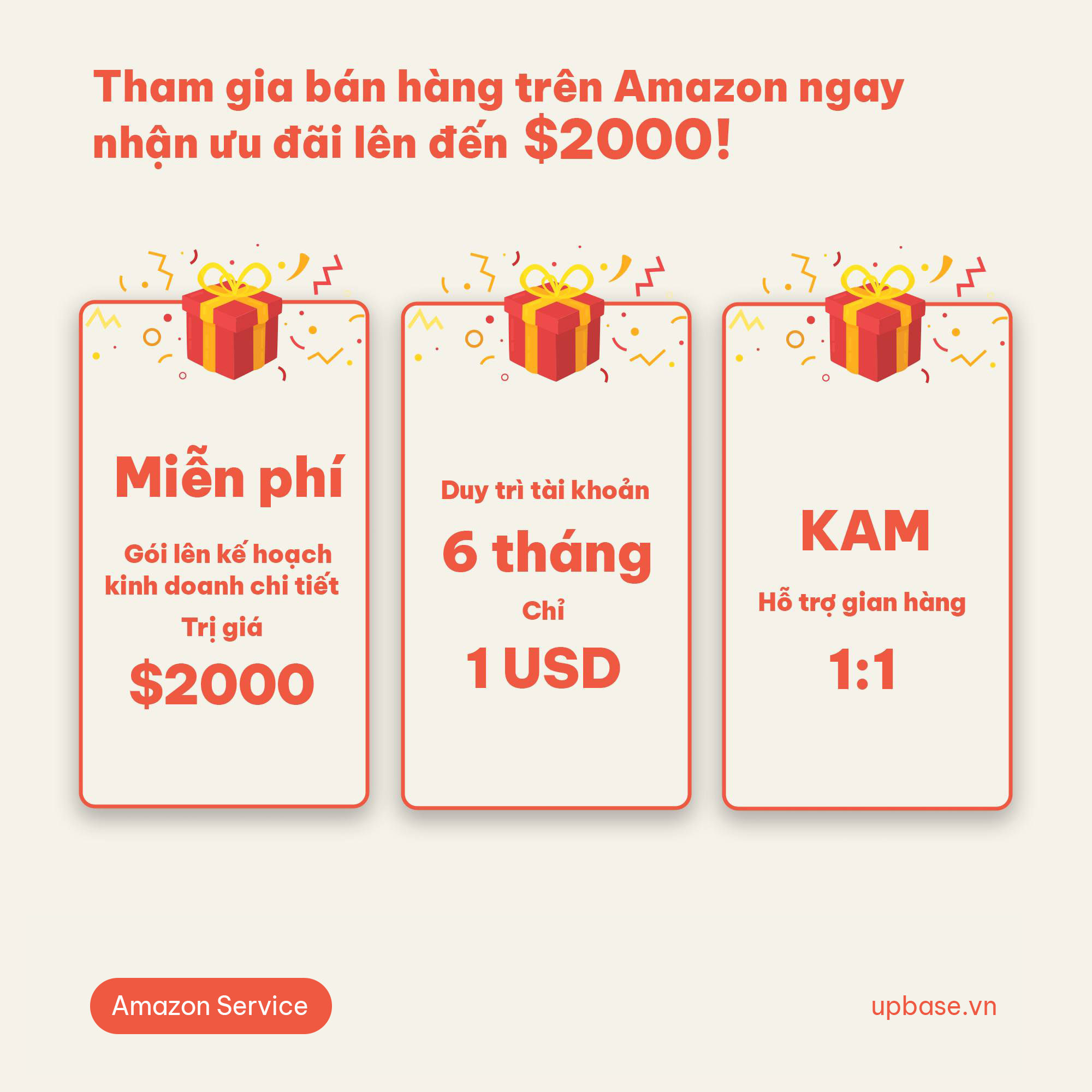 Doanh nghiệp sẽ có cơ hội nhận được ưu đãi khi đăng ký trở thành đối tác bán hàng trên Amazon với UpBase ngay hôm nay!