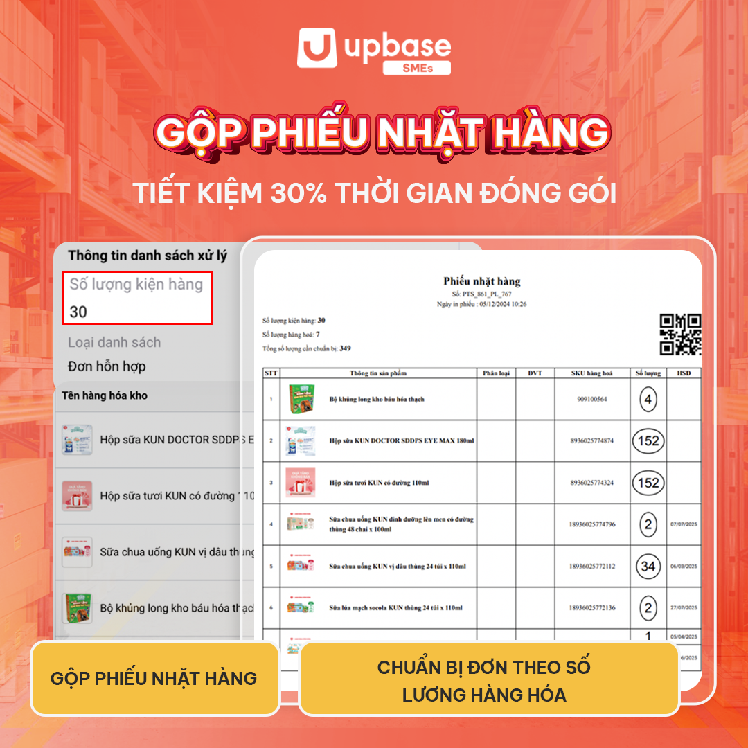 UpBase SMEs giúp Phúc Thịnh tối ưu hóa quy trình nhặt hàng bằng cách cung cấp packing list với nhiều lựa chọn phù hợp cho từng loại đơn hàng: