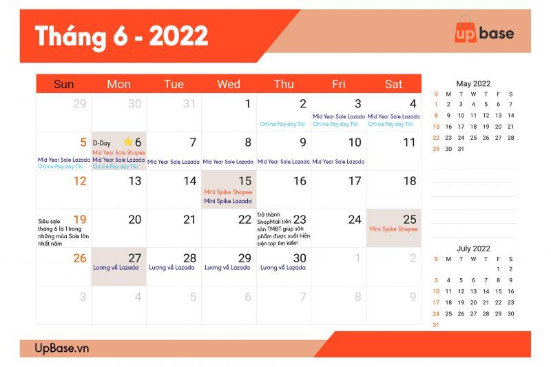 Trong vòng 365 ngày, có vô vàn chiến dịch Sale từ sàn được tổ chức ở rất nhiều cấp độ khác nhau. Nhà bán hàng cần nắm rõ thời gian để xác định kế hoạch thực thi cụ thể, có được sự chủ động hơn. Từ đó giảm bớt được gánh nặng, tối đa hóa cơ hội ( doanh số, tỷ lệ chuyển đổi, lượt truy cập,…), cũng như tối thiểu hóa chi phí. Mời Nhà bán hàng tham khảo bài viết của UpBase: Lịch Mega Campaign trên sàn Shopee/Lazada/Tiki năm 2022
