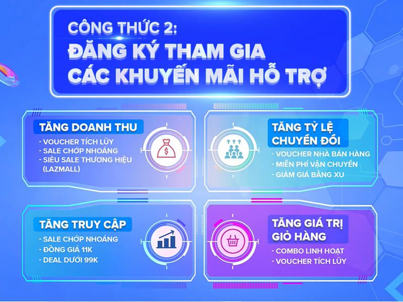 Các nhà bán hàng nên tham gia hết tất cả các chương trình khuyến mại để tối đa truy cập đến gian hàng và tăng doanh thu trên Lazada.