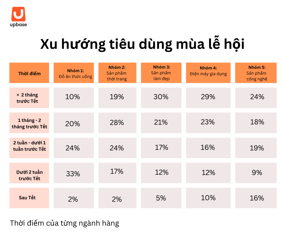 Phân tích hành vi khách hàng mùa Tết: Thời gian Tết, người tiêu dùng thường tập trung vào mua sắm quà tặng, sản phẩm chăm sóc cá nhân, thực phẩm và các mặt hàng gia dụng. Đặc biệt, yếu tố truyền thống và tinh thần gia đình là điểm nhấn quan trọng mà Thương hiệu có thể tận dụng để xây dựng chiến lược nội dung.