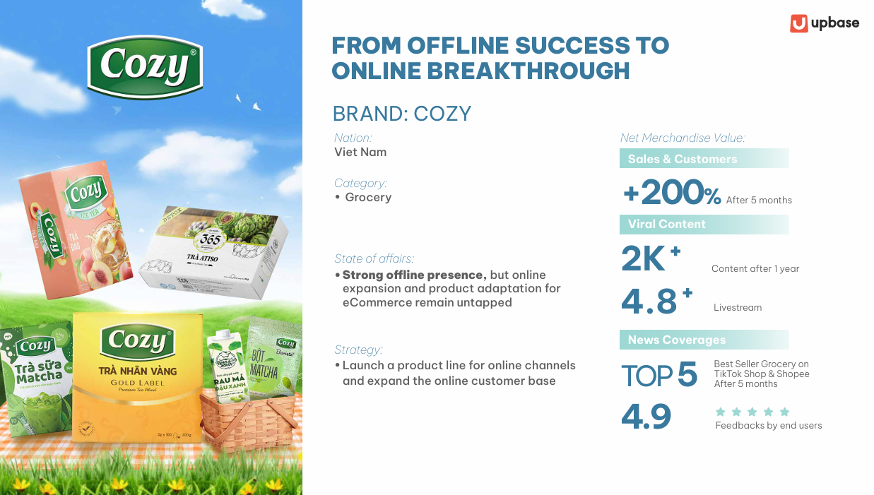 This is the story of how Cozy transformed its strong offline legacy into a breakthrough online success, growing sales by over 200% in just five months, and entering the Top 5 Best-Selling Grocery Brands on Shopee and TikTok Shop — powered by the eCommerce operation expertise of UpBase.