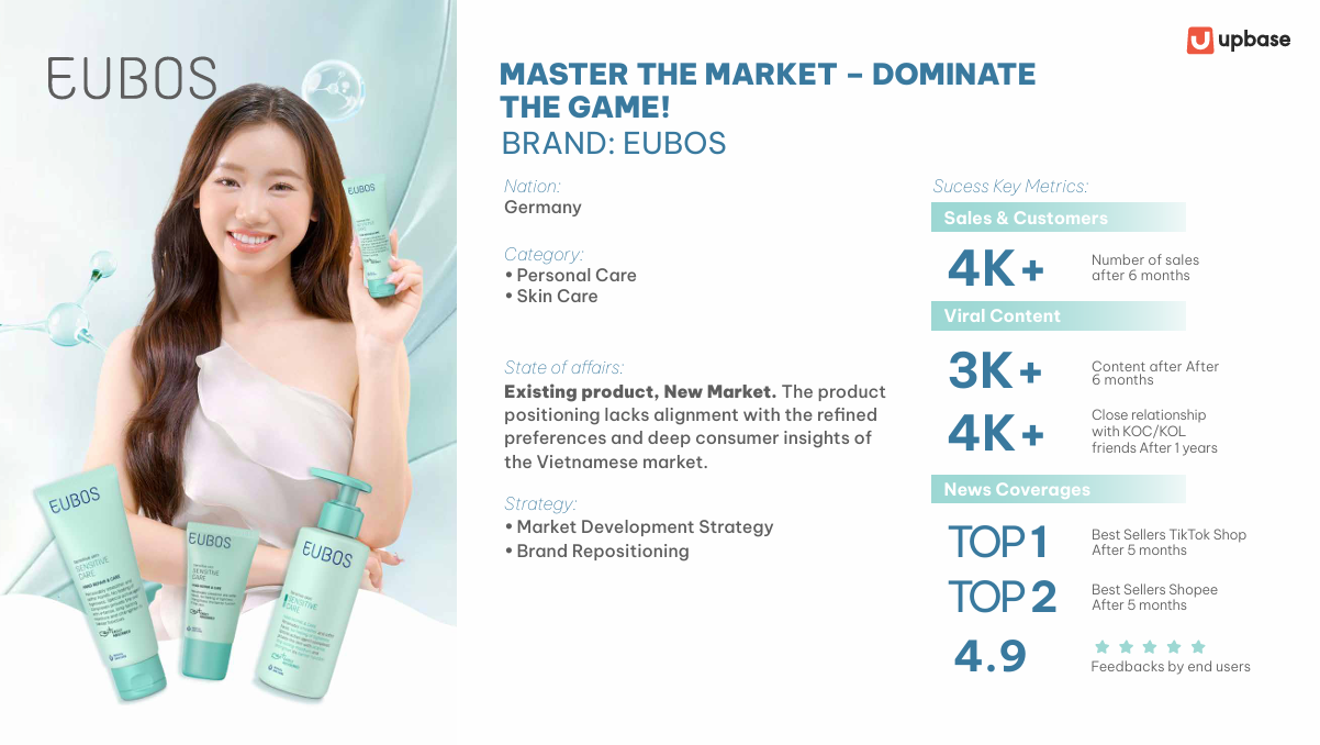 UpBase proposed a bold repositioning — instead of competing head-to-head in facial skincare, EUBOS would enter Vietnam as "The Dermatological Hand Cream Expert from Germany".