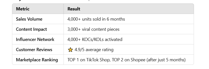 - Channel architecture: Structured TikTok Shop and Shopee not just as storefronts, but as storytelling platforms — with visuals, bundles, and pricing strategies tailored for each.