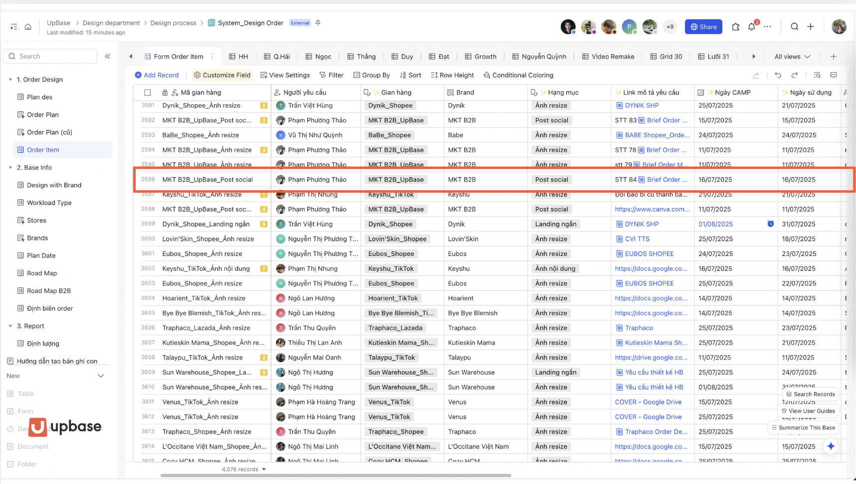 - Designer upload bản nháp trực tiếp lên Order Design trong Lark Base, Content và quản lý comment trực tiếp trên từng chi tiết.