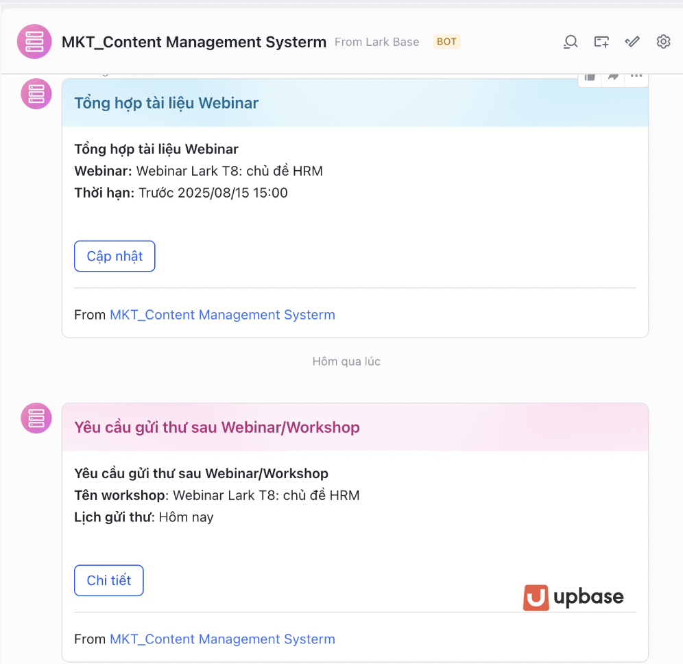 📩 Nếu doanh nghiệp của bạn đang đối mặt với những điểm nghẽn tương tự, hãy liên hệ với UpBase để trải nghiệm demo thực tế và nhận tư vấn 1:1 về lộ trình chuyển đổi số phòng Marketing với Lark.