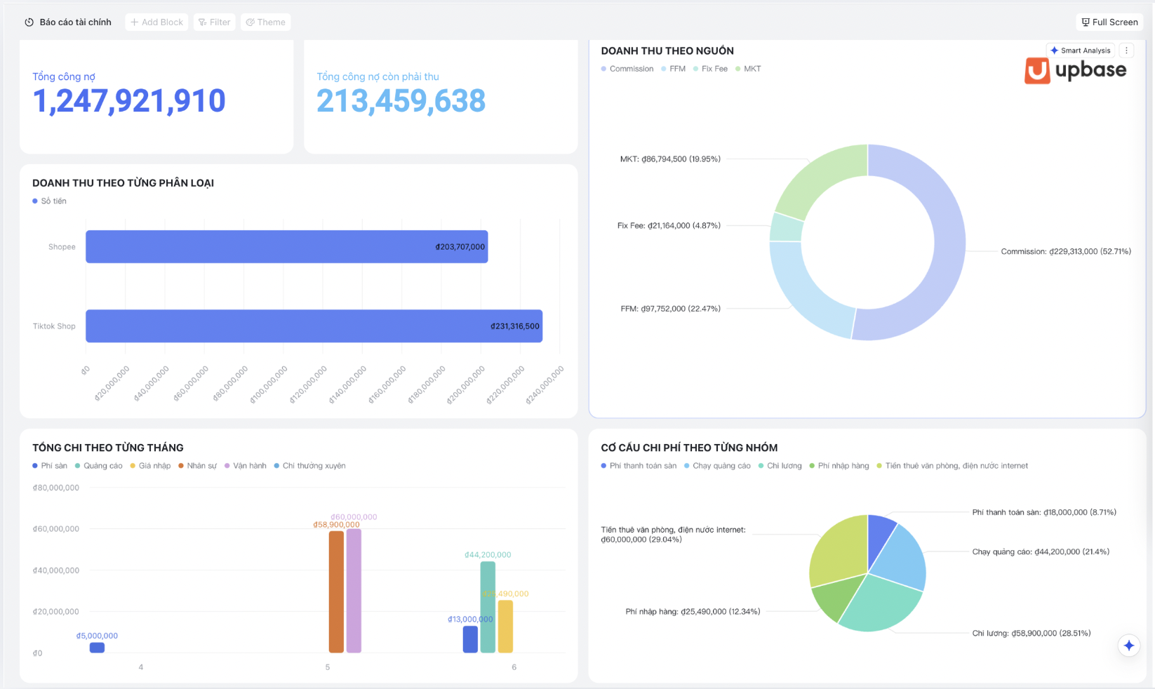 Ban lãnh đạo có thể theo dõi bức tranh tài chính toàn chuỗi thông qua dashboard tập trung: