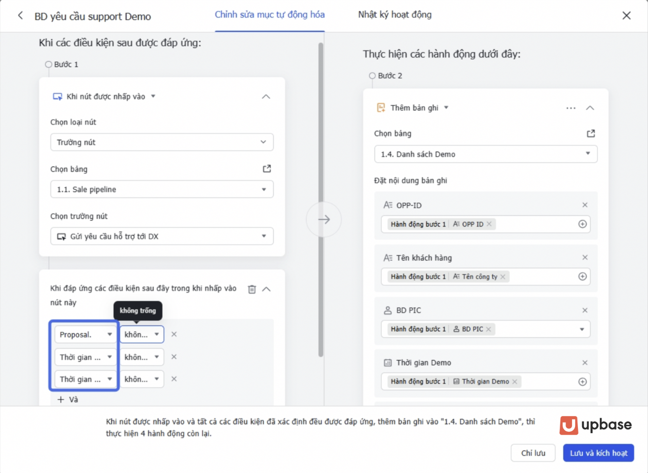 Hệ thống CRM B2B của UpBase không dừng lại ở việc ghi nhận dữ liệu mà chủ động vận hành thay con người.